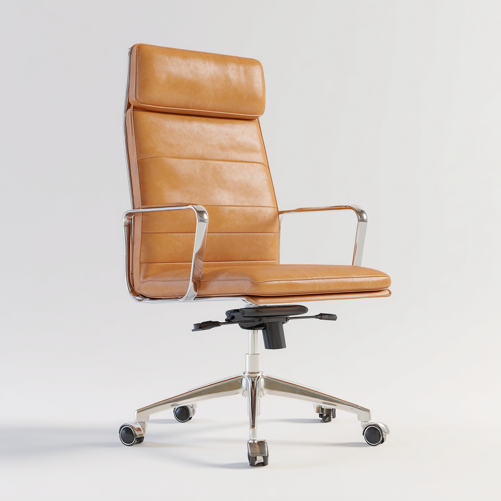 Chaise de bureau cuir véritable 65x63x118 cm - marron clair - pour espace de travail - style moderne