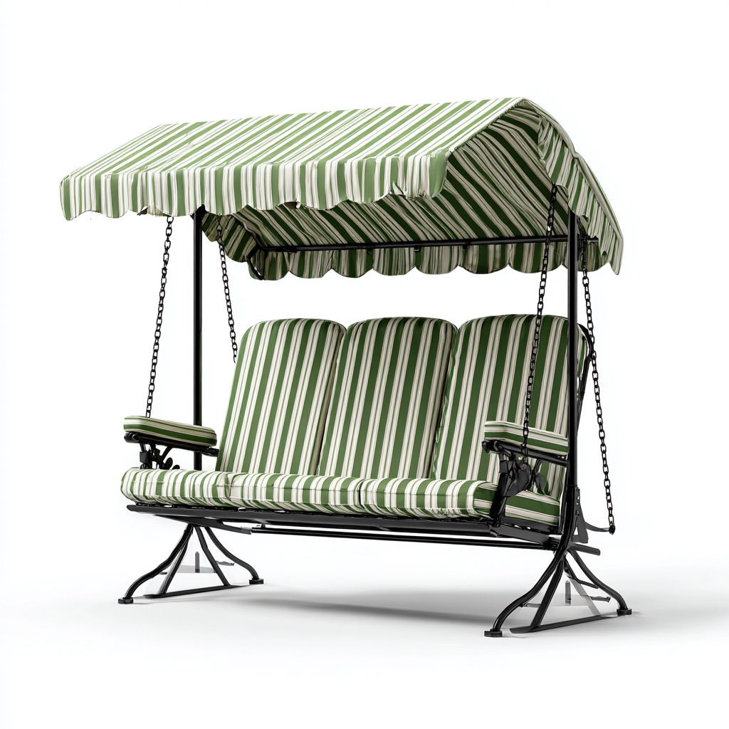 Dondolo de jardin - acier - tissu 200x130x160 cm - vert - blanc - usage extérieur - style classique