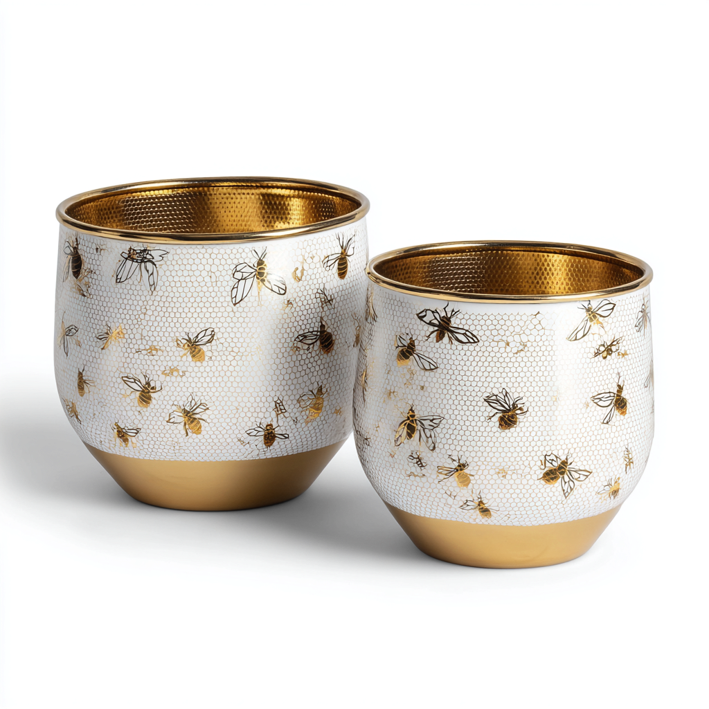 Pots Et Supports De Plantes Métal 18X18X20 Cm - Blanc-Or - Ensemble De Pots Décoratifs - Style Moderne