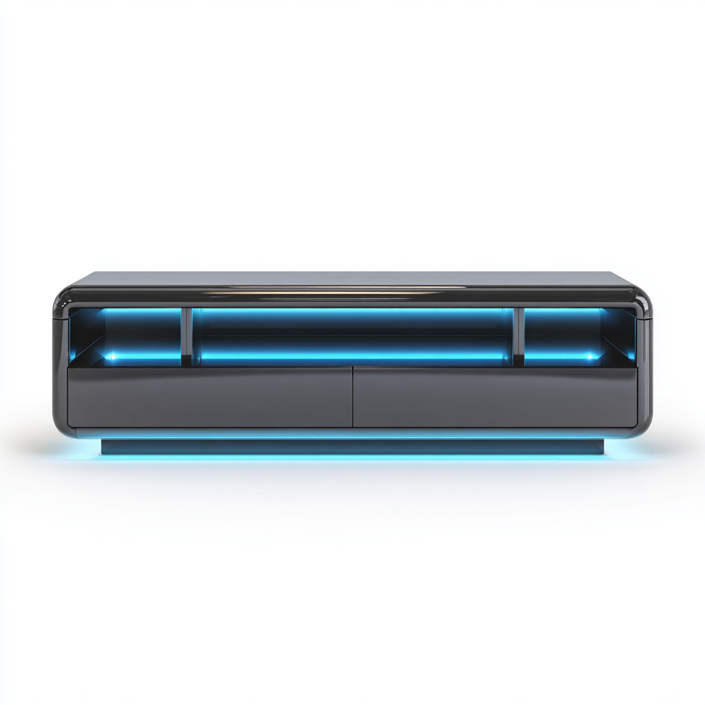 Meuble TV panneau acrylique 150x38x45 cm - noir - éclairage LED futuriste