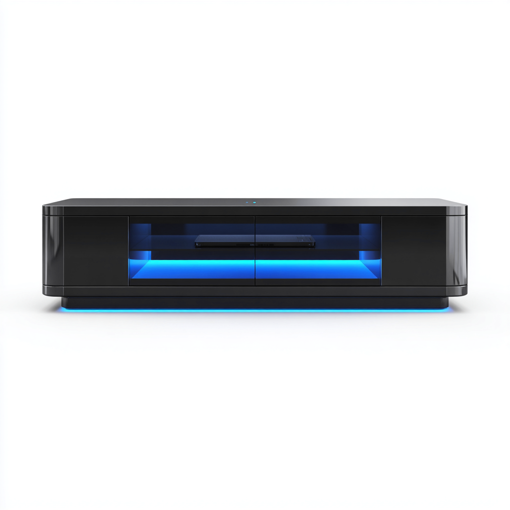 Meuble TV verre acrylique 160x40x50 cm - noir - éclairage LED moderne