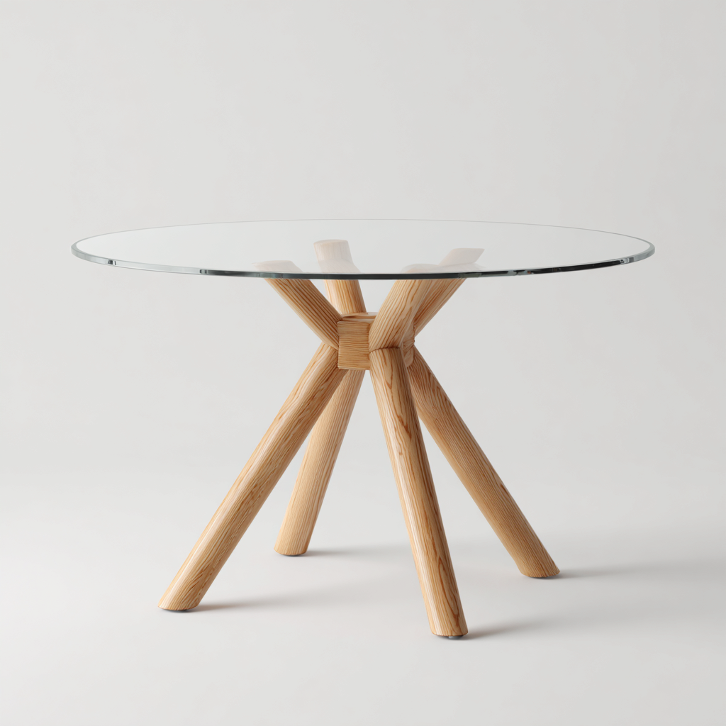 Table à manger - verre-bois - 110x110x75 cm - transparent-naturel - style moderne