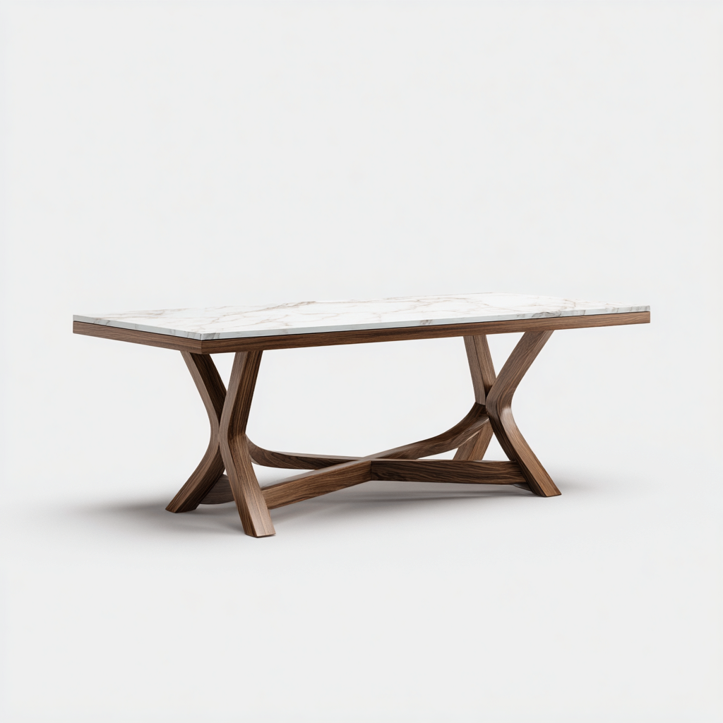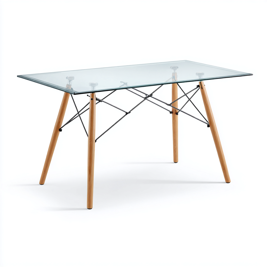 Table à manger - verre-bois-métal - 140x80x75 cm - transparent-naturel-noir - style moderne