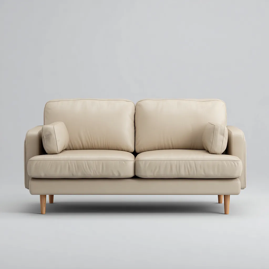 Canapé 2 Places Cuir Véritable 186x84x82 Cm - Beige - Pieds En Bois - Adapté Au Salon - Design Moderne