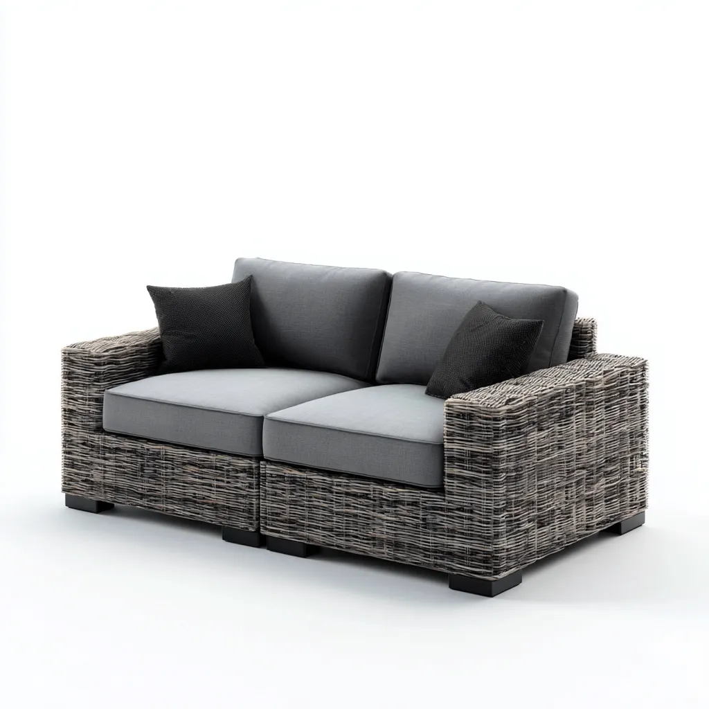 Canapé de jardin - résine tressée - tissu 150x80x70 cm - gris - usage extérieur - design moderne