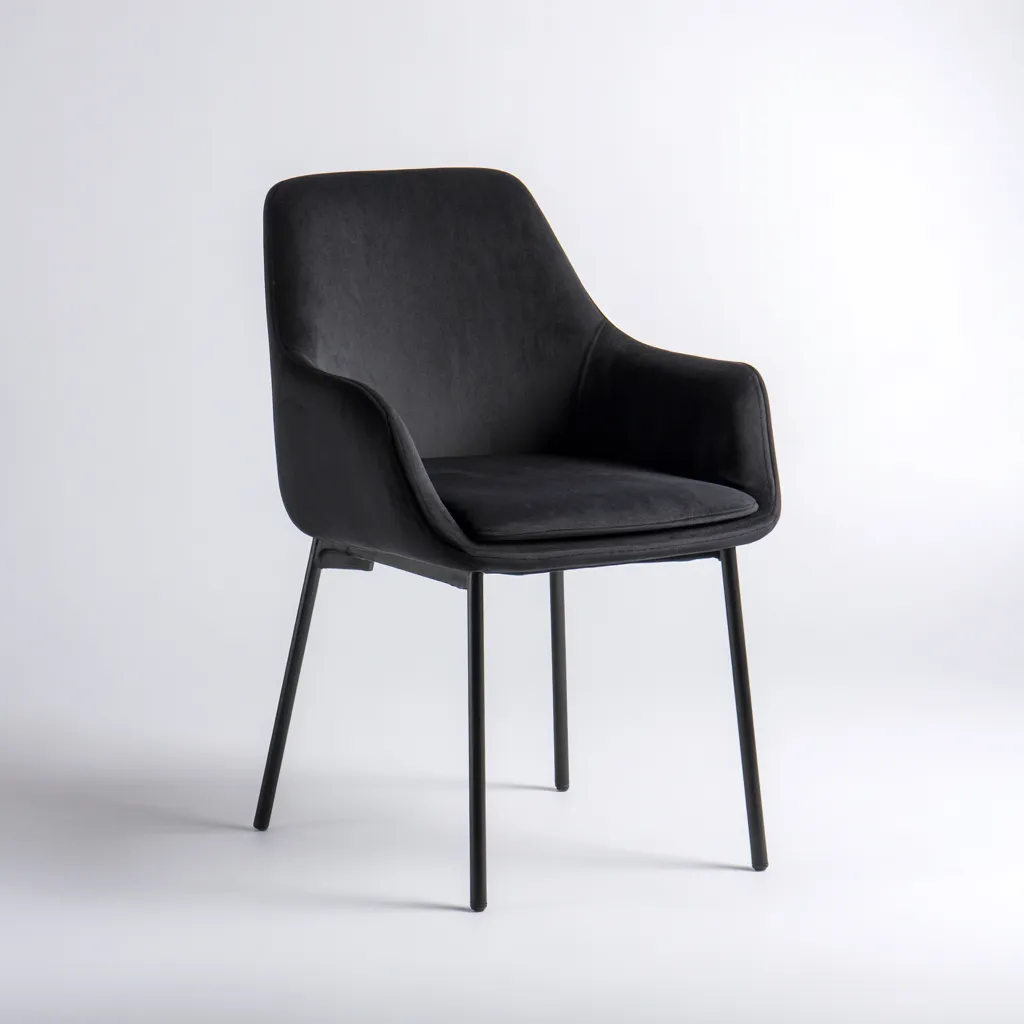 Chaise de salle à manger Velours-Métal 46x56x83 cm - Noir - Style moderne