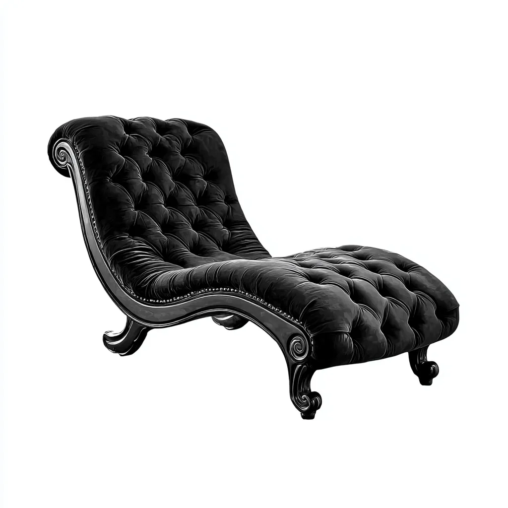 La chaise longue est revêtue d'un tissu noir résistant et doux. La structure sculptée et les finitions courbées apportent un style classique et une bonne stabilité.
