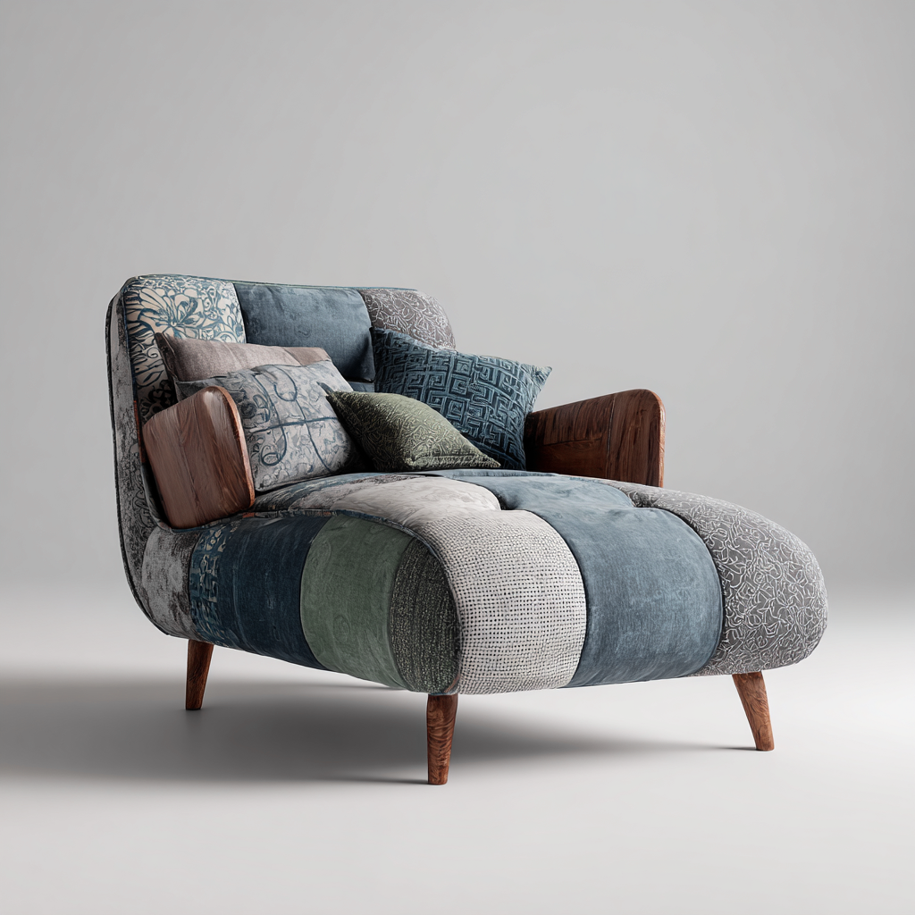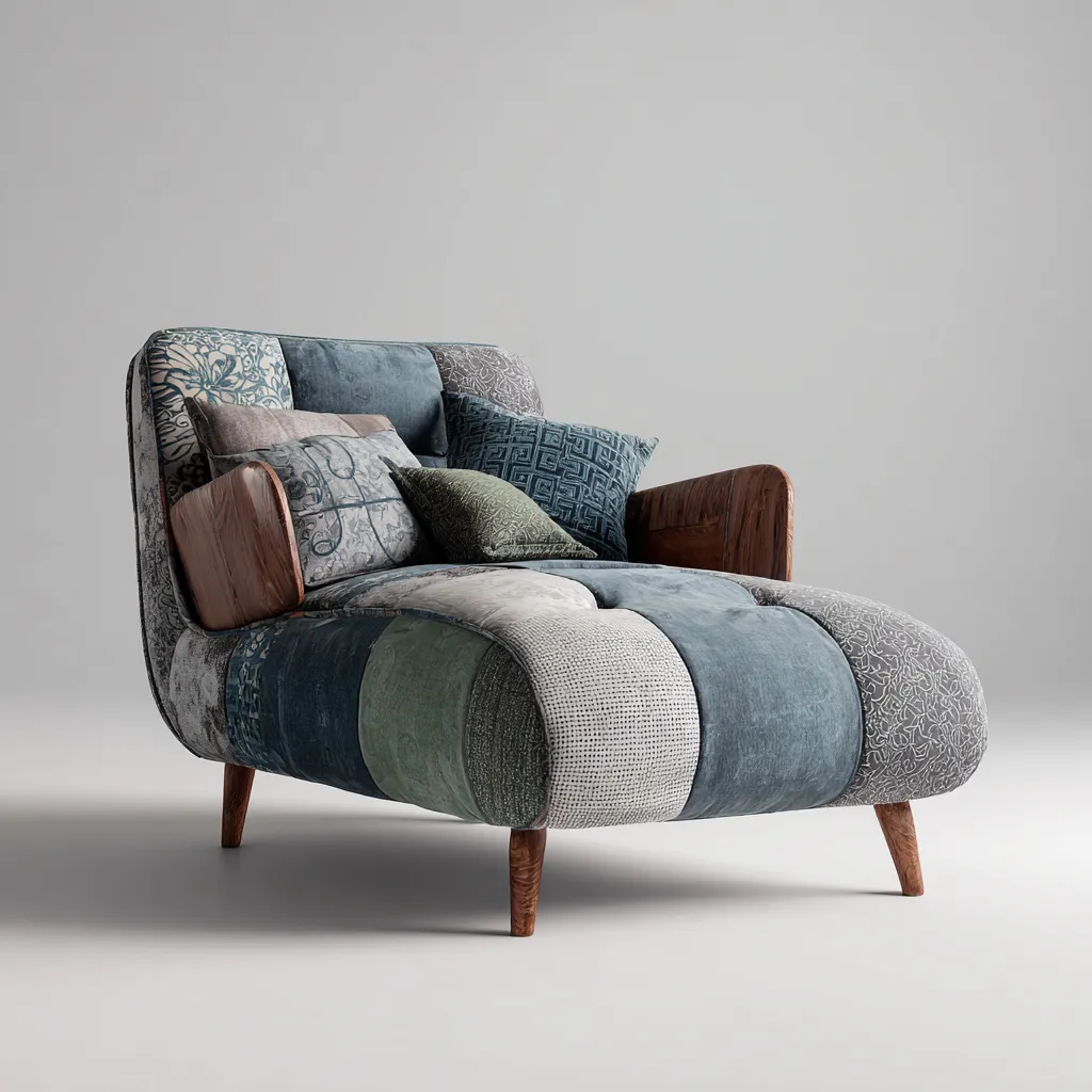 Chaise longue tissu patchwork 165x72x85 cm - multicolore - design rétro pour salon