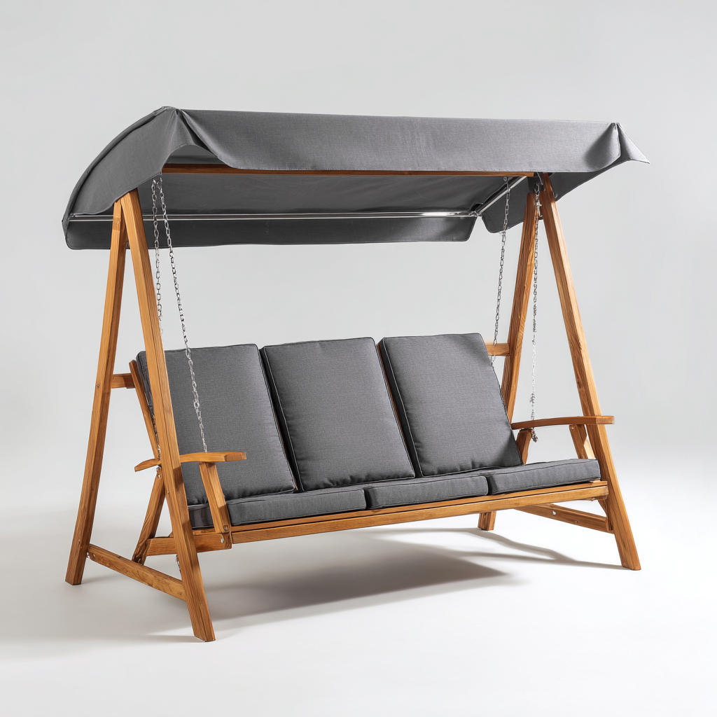 Dondolo de jardin - bois - tissu 205x130x165 cm - gris - naturel - usage extérieur - design moderne