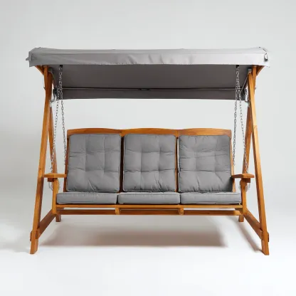 Dondolo de jardin - bois - tissu 210x135x170 cm - gris - naturel - usage extérieur - design classique
