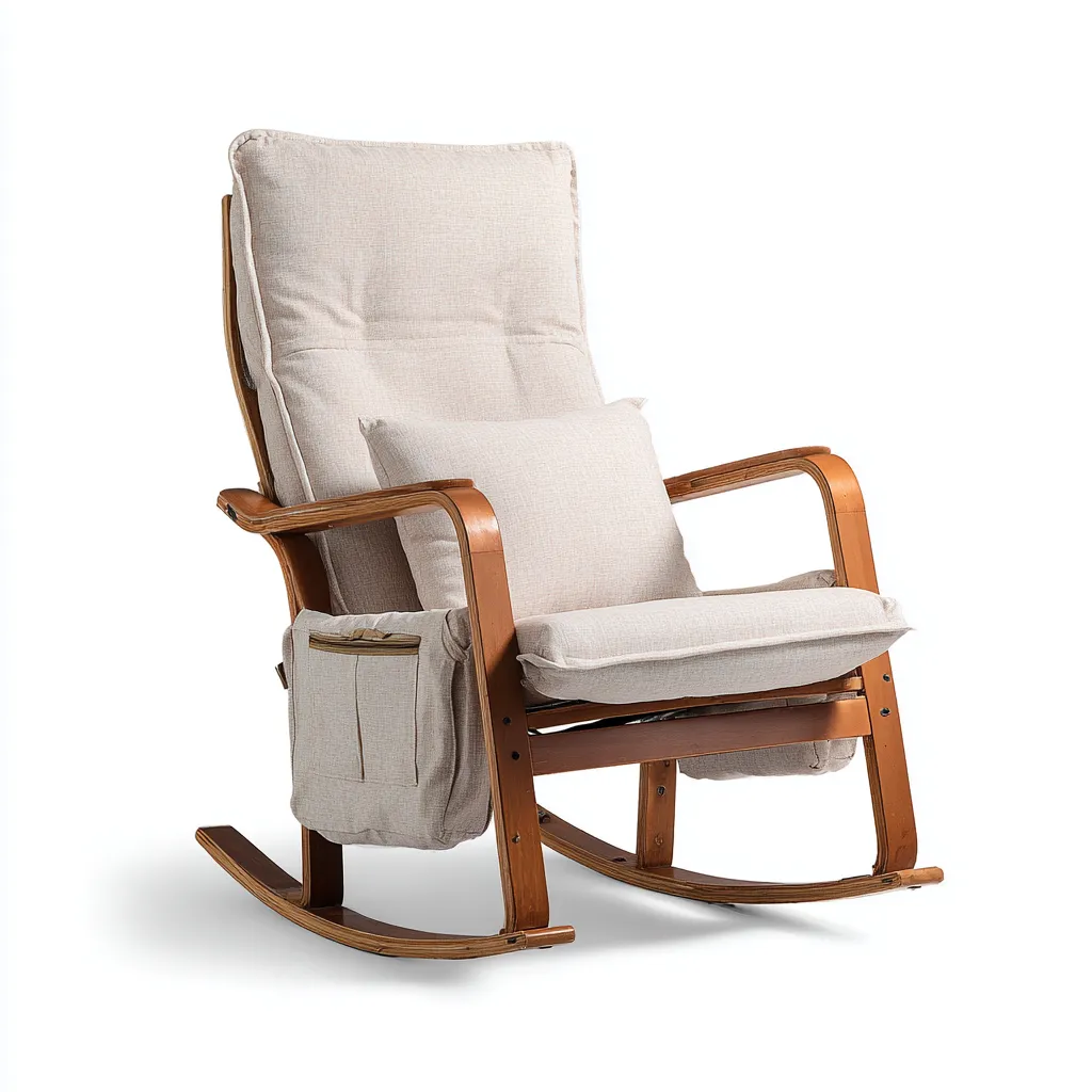 Fauteuil à bascule en bois et tissu 85x70x105 cm beige - style confortable relax