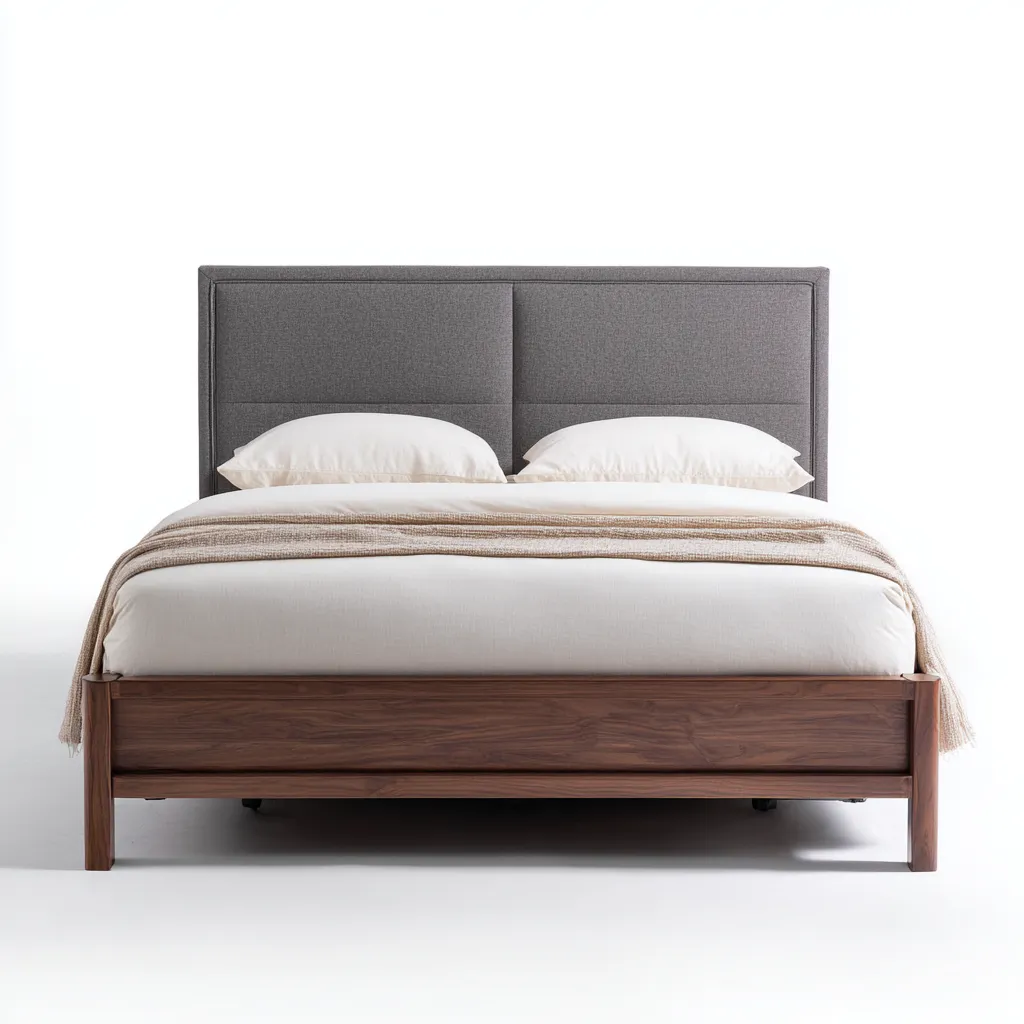 Lit Double Bois Et Tissu 200x160x110 Cm - Gris Foncé-Noyer - Style Moderne - Adapté À La Chambre
