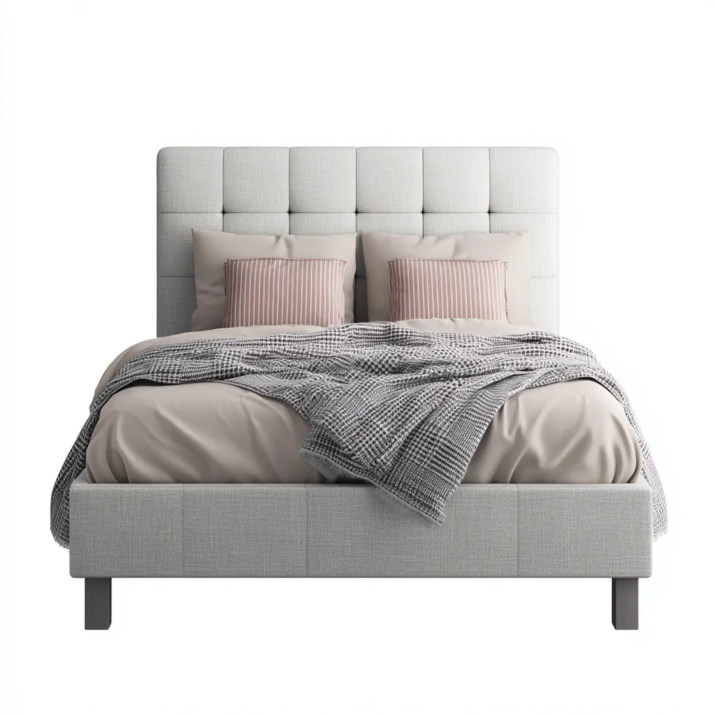 Ce lit double en tissu se distingue par son design moderne et épuré, idéal pour une chambre contemporaine. Sa tête de lit capitonnée apporte une touche élégante tout en offrant un bon soutien lors des moments de détente.