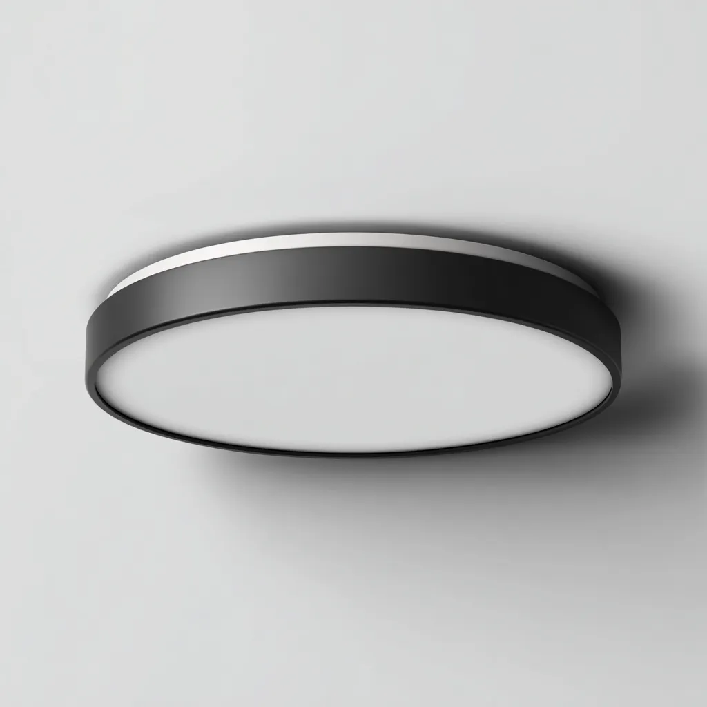Ce plafonnier rond au style moderne offre un éclairage doux et homogène, idéal pour les pièces de vie nécessitant une lumière confortable et discrète.