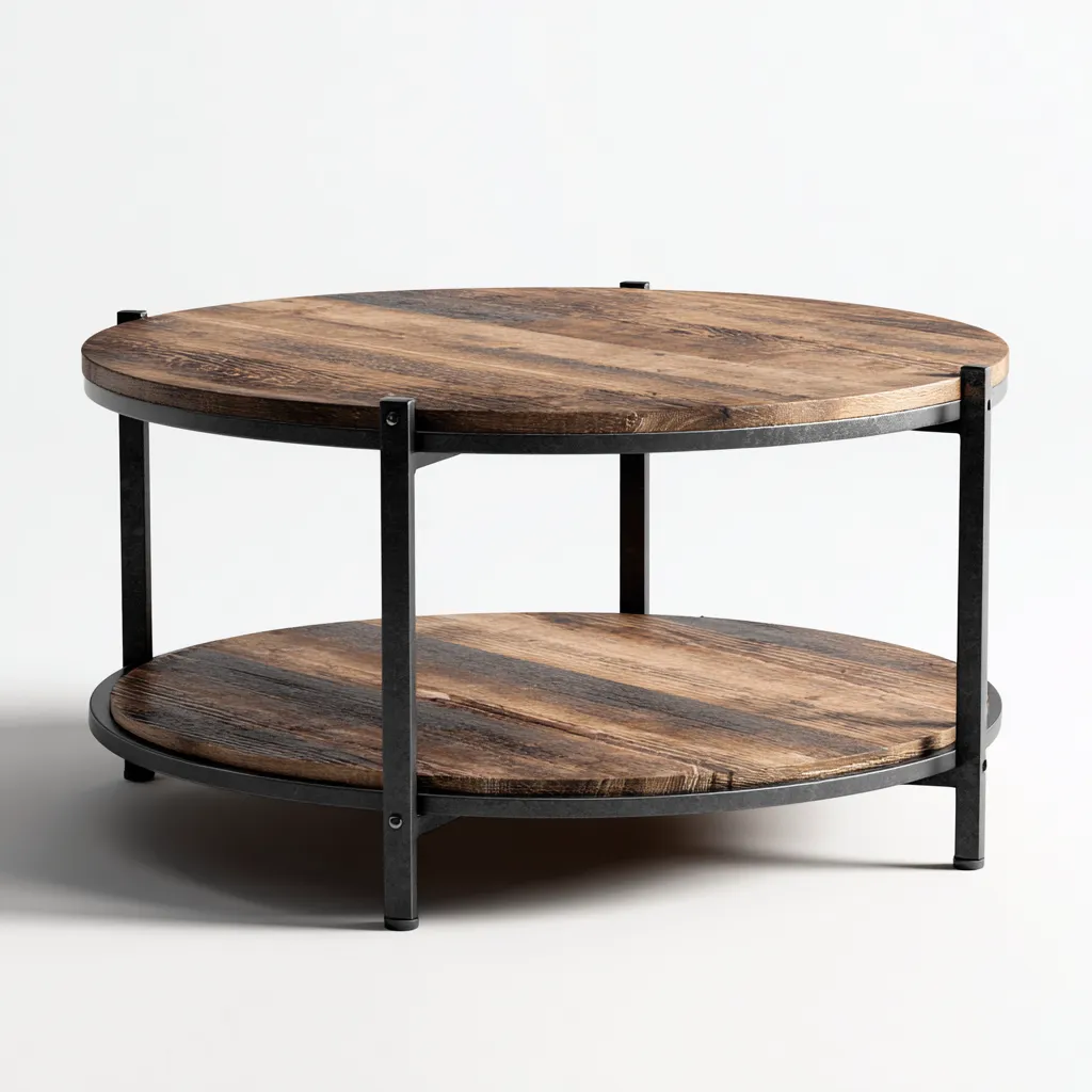 Cette table basse en bois et métal adopte un style industriel authentique,adaptée au salon,offrant une surface stable pour les boissons,les magazines et les objets du quotidien.