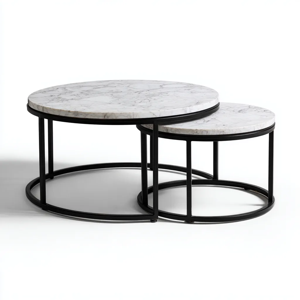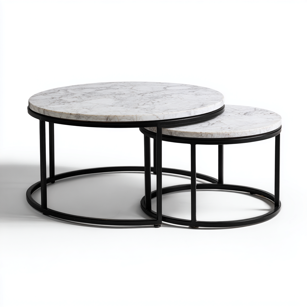 Table Basse-Pierre Métal-80x80x42 Cm - 60x60x36 Cm-Blanc-Gris-Style Moderne Adapté Au Salon