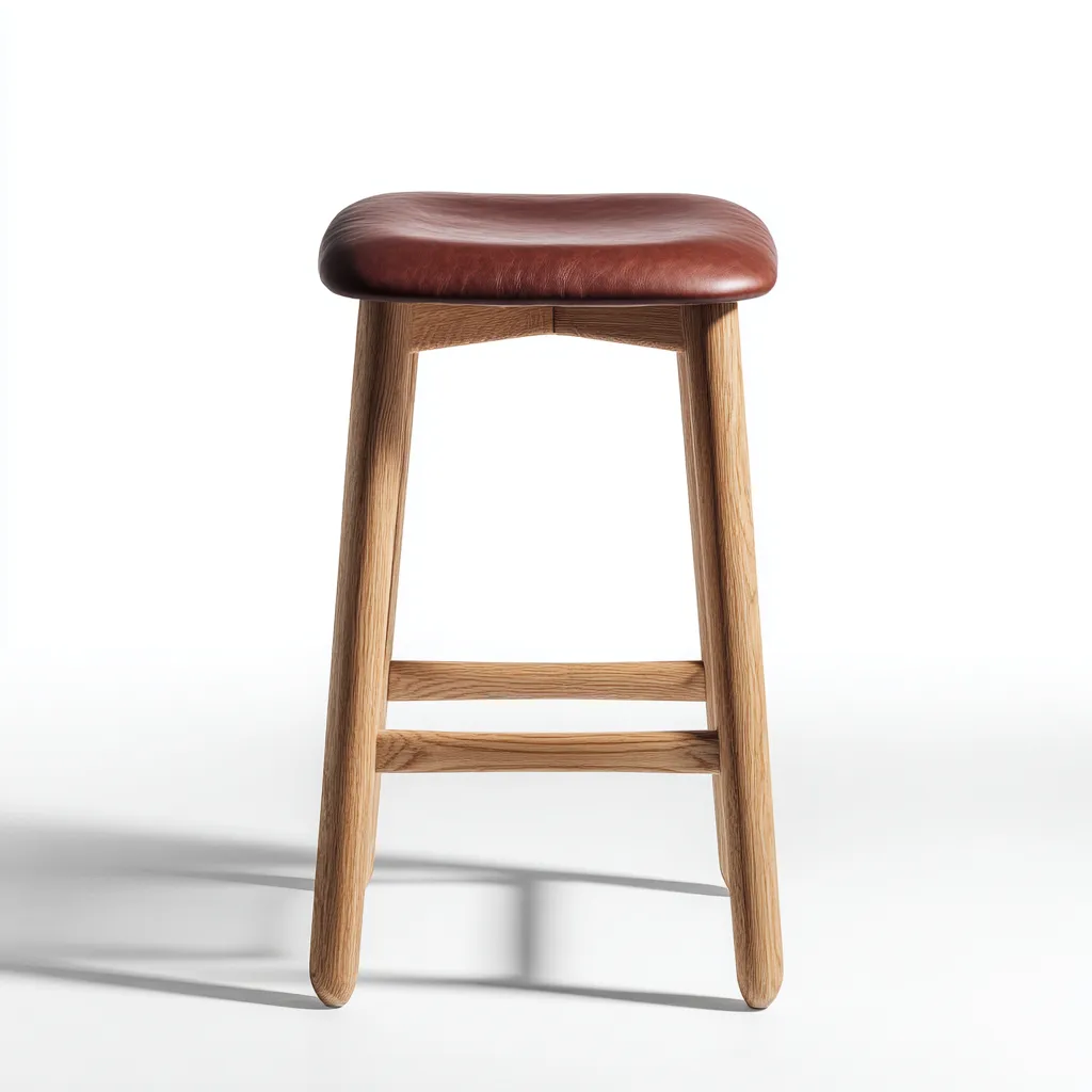 Tabouret de bar - Bois-Cuir - 40x35x65 cm - Marron-Bois naturel - Design contemporain