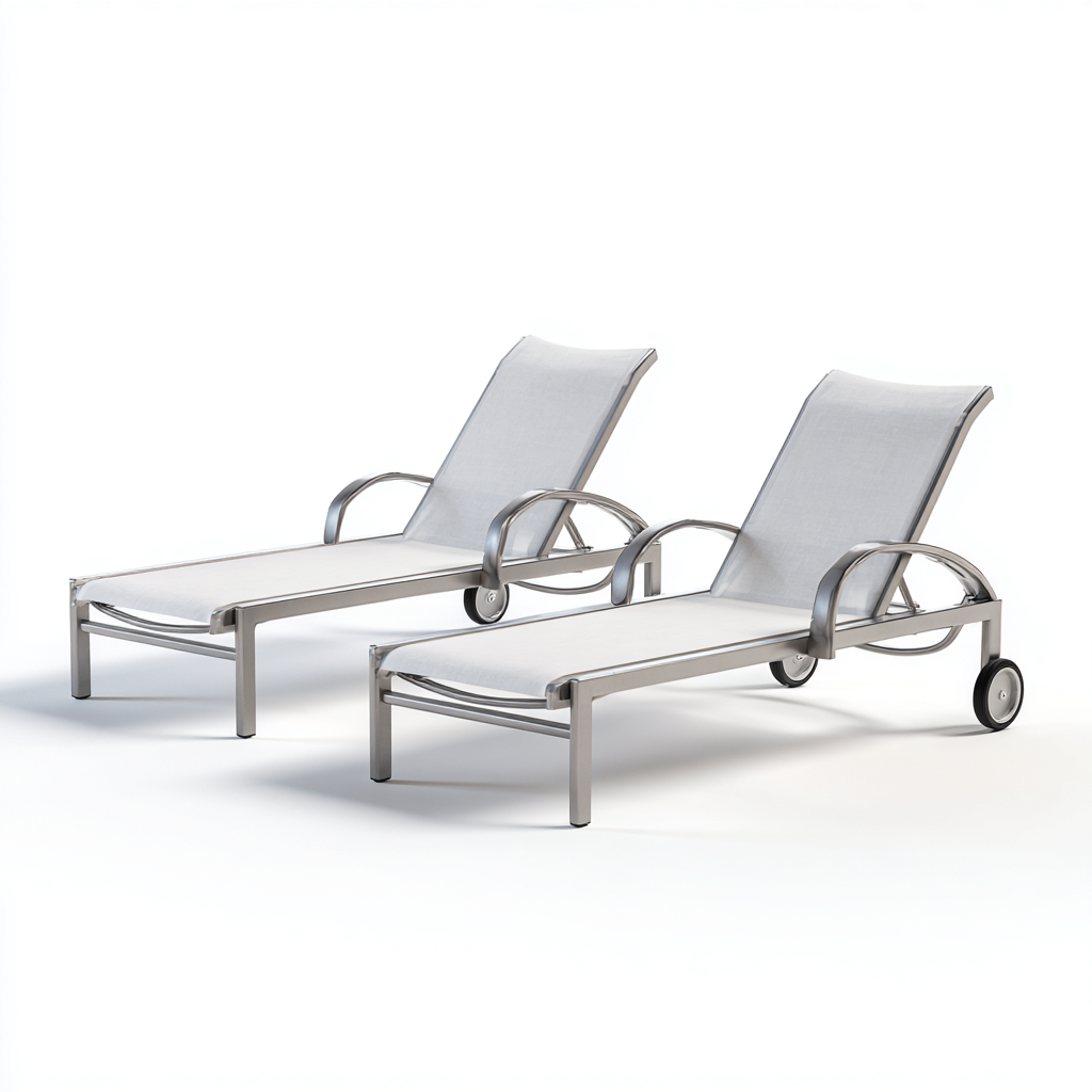Transat-textile-acier inoxydable-198x68x36 cm-blanc-gris-design moderne