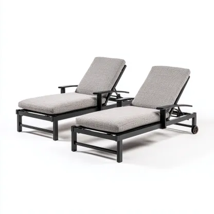 Transat-tissu-acier-200x72x40 cm-gris-noir-design moderne